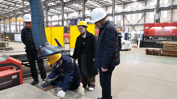 在王喆经理的陪同下,李校长一行深入企业生产与工作区域进行参观,详细了解了先进的技术应用、严谨的生产流程以及人性化的管理文化。李登宝指出,与北得龙集团持续两年的成功合作,是学校“校企联合、强强联合”办学理念的生动实践,其形成的良好口碑是对办学质量的最佳认可。学校将倍加珍惜这一合作成果,以续签协议为新起点,充分吸纳企业方的宝贵建议,持续优化“北得龙焊接校企定向班”的课程设置、实训内容和考核标准,确保人才培养与企业需求同频共振,为企业输送更多“用得上、留得住、发展好”的焊接技术精英。