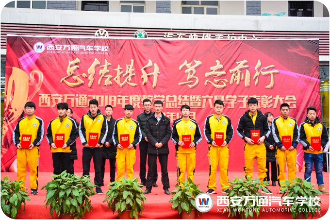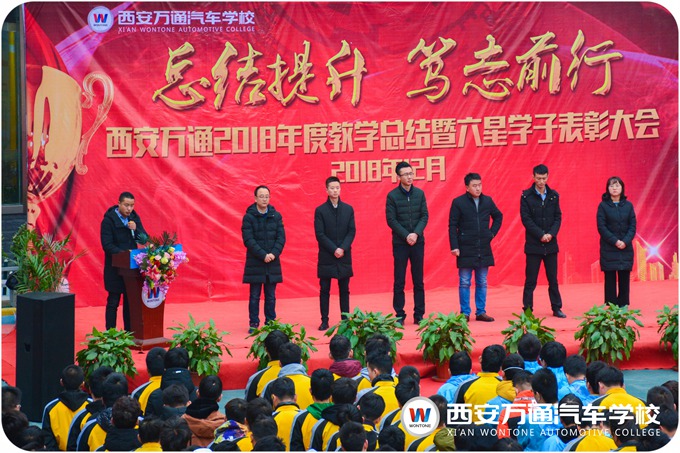 在过去的一年里,西安万通在发展,万通的学子也有着很大的进步,在学习中就涌现出一批优秀的学子。在激动人心的曲乐中,西安万通2018汽车技能大赛、新生趣味技能大赛以及年度“六星学子”的获奖名单一个一个被公示出来,获奖学子也都收到校领导的颁奖与祝贺。