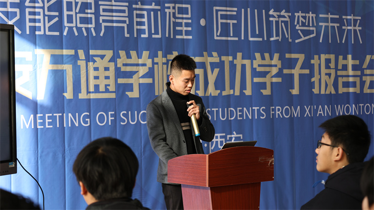 岁末寒冬,暖阳洒落校园。2025年12月23日,西安万通汽车学校报告厅内掌声阵阵,气氛热烈。一场以“成长、感恩、传承”为主题的成功学子报告会在这里举行。三名优秀毕业生——高鑫征、王凯波、陈天宇重返母校,与学弟学妹们分享职场心得与成长感悟。而更令人动容的是,三位学子代表全体同学,向班主任马文瑞老师和秦贺老师敬献锦旗,表达对恩师培育之情的深深感激。